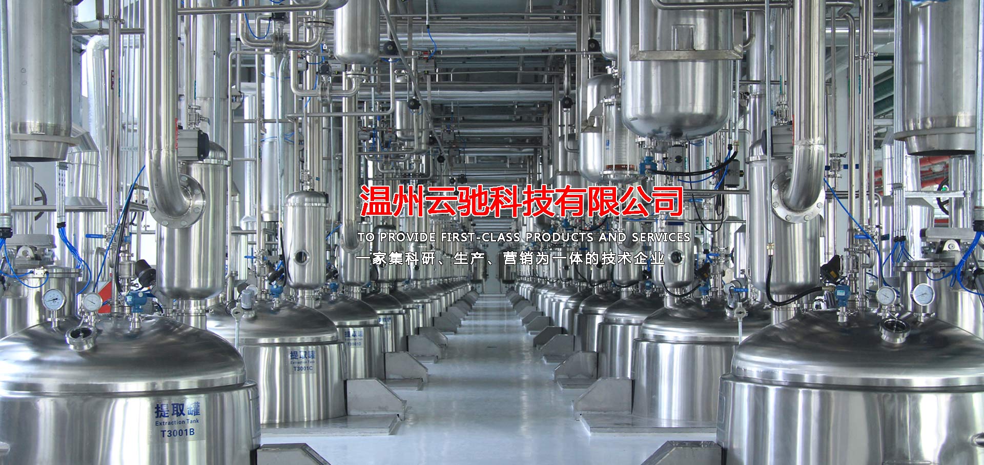溫州云馳科技有限公司是一家集科研、生產(chǎn)、營銷為一體的技術(shù)企業(yè),本公司生產(chǎn)的中藥提取、濃縮、蒸發(fā)及有機溶媒回收設備,衛(wèi)生級不銹鋼容器設備,衛(wèi)生級管道配件等系列產(chǎn)品,范圍涵蓋制藥工程、乳品工程、生物工程、化工工程等領域,目前,本公司產(chǎn)品包含八大系列和28類品種,分別為中藥提取設備、濃縮設備、純化分離設備,酒精回收設備,配液系統(tǒng)設備,食品乳品機械設備,不銹鋼容器設備以及輔助配套設備等,力爭為廣大客戶提供滿意的交鑰匙工程服務,目前,本公司已與多家科研院所及相關設計單位、行業(yè)協(xié)會、技術(shù)專員合作,建立了完善的科研開發(fā)體系,技術(shù)力量雄厚,擁有先進的質(zhì)量保證體系,我們將打造一支素質(zhì)高,技術(shù)精,服務熱情的職業(yè)化隊伍,為廣大客戶解決設備工藝上的需求和難題并為廣大客戶提供優(yōu)質(zhì)的服務。
